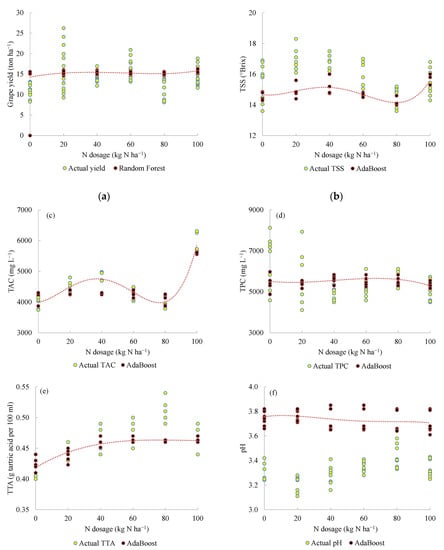 Brunetto, G.; Stefanello, L.O.; Kulmann, M.S.d.S.; Tassinari, A.; Souza, R.O.S.d.; Rozane, D.E.; Tiecher, T.L.; Ceretta, C.A.; Ferreira, P.A.A.; Siqueira, G.N.d.; et al. Prediction of Nitrogen Dosage in ‘Alicante Bouschet’ Vineyards with Machine Learning Models. Plants 2022, 11, 2419. https://doi.org/10.3390/plants11182419
