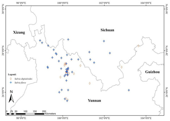 We found that the distribution of Salvia digitaloides and S. flava overlapped broadly in the Yunnan and Sichuan provinces of China (Figure 1).