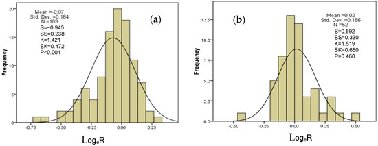 Data were expressed as the mean value ± standard error. SPSS 19.0 software was used to for statistical analysis of the effect size frequency of N, P, and the N:P ratio of AM and ECM plants. For plant and soil parameters, we used the natural log of the response ratio as a metric of the effect size, Loge R = Loge (Xd/Xc) = Loge (Xd) – Loge (Xc), where Xd and Xc are the mean values of drought stress and control treatment, respectively. If loge R = 0, DS processing is invalid.