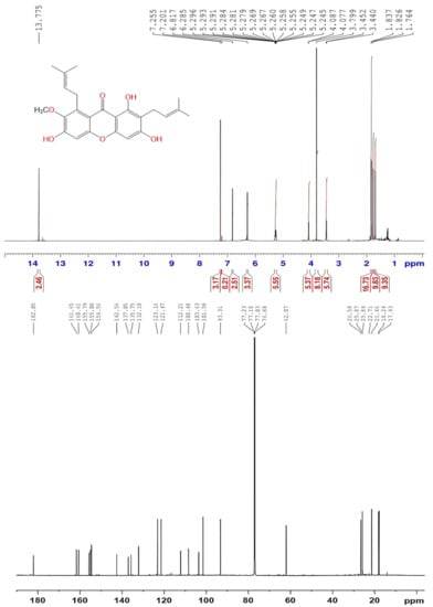 - Ibrahim, S.R.M.; Mohamed, G.A.; Elfaky, M.A.; Al Haidari, R.A.; Zayed, M.F.; El-Kholy, A.A.; Ross, S.A. Garcixanthone A, a new cytotoxic xanthone from the pericarps of Garcinia mangostana. J. Asian Nat. Prod. Res. 2019, 21, 291–297. [Google Scholar] [CrossRef] [PubMed]