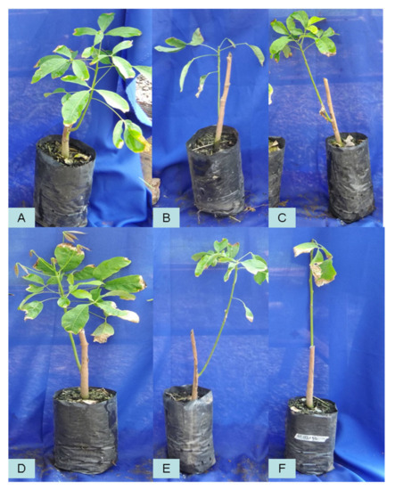 - Antonio, G.L.; Scaloppi, E.J., Jr.; Fischer, I.H.; Furtado, E.L.; Firmino, A.C. Clonal resistance of rubber tree to Colletotrichum spp. For. Pathol. 2021, 51, e12685. [Google Scholar] [CrossRef]