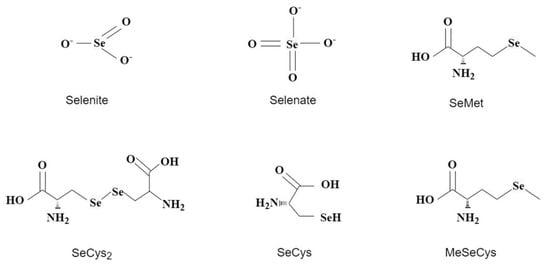 - Dumont, E.; Vanhaecke, F.; Cornelis, R. Selenium speciation from food source to metabolites: A critical review. Anal. Bioanal. 2006, 385, 1304–1323. [Google Scholar] [CrossRef]
