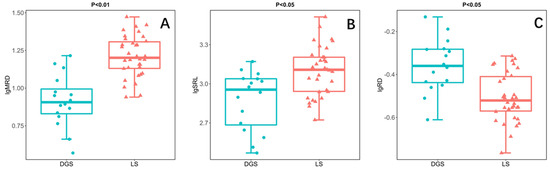 In this study, the root morphology of annual ephemeral species rooting different soil conditions was compared by independent sample t-test. The results showed that the MRD of species rooting LS was significantly higher than that of species rooting DGS (Figure 2A). In addition, the SRL of the species rooting LS was also significantly higher than that of the species rooting DGS (Figure 2B). However, the RD of species rooting LS is significantly lower than that of species rooting DGS (Figure 2C). Finally, there was no significant difference in SRA and RTD between the two soil conditions (Figure 2D,E).