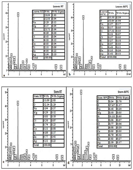 - Zayed, M.F.; Eisa, W.H.; El-Kousy, S.M.; Mleha, W.K.; Kamal, N. Ficus retusa-stabilized gold and silver nanoparticles: Controlled synthesis, spectroscopic characterization, and sensing properties. Spectrochim. Acta Part A Mol. Biomol. Spectrosc. 2019, 214, 496–512. [Google Scholar] [CrossRef] [PubMed]