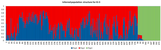 - Pritchard, J.K.; Stephens, M.; Donnelly, P. Inference of Population Structure Using Multilocus Genotype Data. Genetics 2000, 155, 945–959. [Google Scholar] [CrossRef] [PubMed]