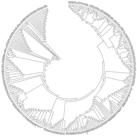 - Falush, D.; Stephens, M.; Pritchard, J.K. Inference of Population Structure Using Multilocus Genotype Data: Linked Loci and Correlated Allele Frequencies. Genetics 2003, 164, 1567–1587. [Google Scholar] [CrossRef]