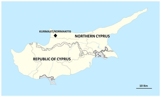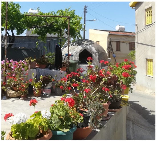 The field study was carried out in the small village of Kormakitis, Northern Cyprus, in May 2022 (Figure 1 and Figure 2). Most of the Maronites in Kormakitis came from a Lebanese village called Kour located in the Batroun district of Northern Lebanon []. The name of the studied village can be transcribed in the spoken Lebanese dialect as “Kor ma giti”, which literally means “Kour did not come”, referring to the fact that Maronites emigrated from the village of Kour, but were not able to bring the village with them; this may somehow reflect the Maronite migrants’ nostalgia for their homeland and the original Arabic identity of the village. Although Maronites represent one of the main ethno-religious groups in the Eastern Mediterranean and preserve an essential part of the region’s identity, they are still underdocumented from an ethnobotanical perspective. The uniqueness of the group is rooted in their merger of eastern Assyrian culture and rituals on one side, and the Church of Rome on the other []. Historically, the group originated in the Orontes Valley of present-day Syria. Between the 8th and 10th centuries, a mass migration of the group led to the transfer of the Maronite patriarchal residence to Mount Lebanon []. Currently, Maronites live mainly in Lebanon, where they form a quarter of the country’s population, as well as in Syria, France, USA, Mexico, and South America. Similar to other ethnic-religious groups of the region, Maronites have suffered from instability in the region over the past millennia due to various empires frequently clashing over the eastern Mediterranean (e.g., Byzantine, Persian, Roman, Umayyad, Abbasi, and Ottoman), political riots, and intricate and delicate religious affairs. Therefore, many members of the group have migrated out of the region, with Cyprus being one of the destinations [].