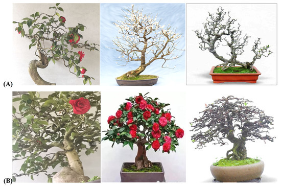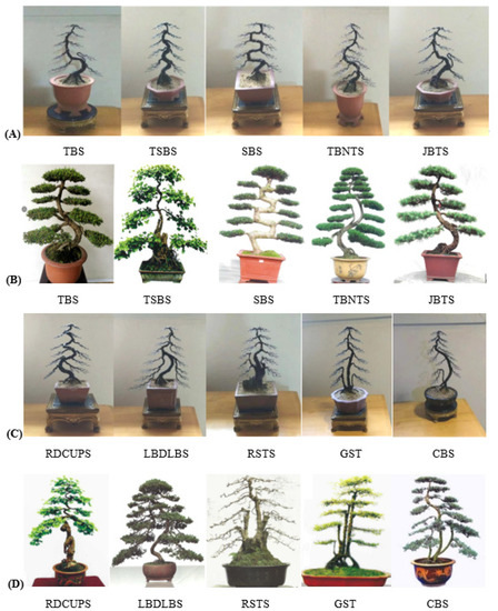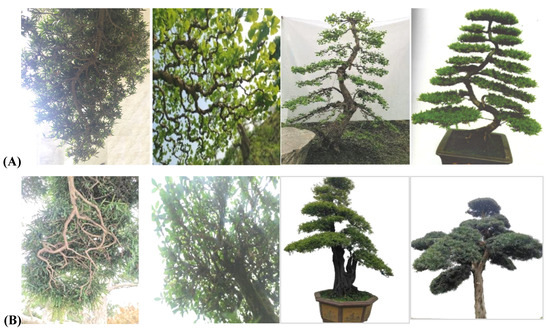 The authors would like to thank the editors of this article and three anonymous reviewers for comments on the original manuscript. Special thanks to Lianghua Xu for providing regular bonsai models and to Mingfu Li, Bin Chen, Shengdong Lai, Kaiqiang Hu, Zhigui Chen, Zhiwei Li, and other bonsai artists for providing their own bonsai works. We are also particularly grateful to the Dujiangyan Bonsai Association, the Sichuan Bonsai Association, the Dayi Bonsai Association, and other organizations in Sichuan and Chongqing for the bonsai images. Moreover, we would like to express our thanks to Weixuan Gao, College of Landscape Architecture, Sichuan Agricultural University, for providing all the painted patterns; to Yuqin Qiao for helping to adjust the backgrounds of the bonsai pictures; and to 30 students of Class 2019 in Modern Agriculture Major at Chengdu College of Agricultural for auxiliary measurement data. In addition, we thank the others who contributed to this paper.