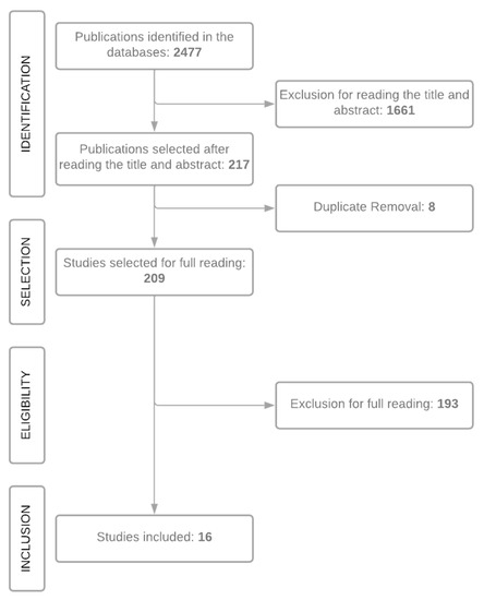 Subsequently, a complete reading of the 209 pre-selected articles was necessary, followed by the interpretation of the data that answered the guiding question of this review. The selection process was developed as shown in Figure 8.