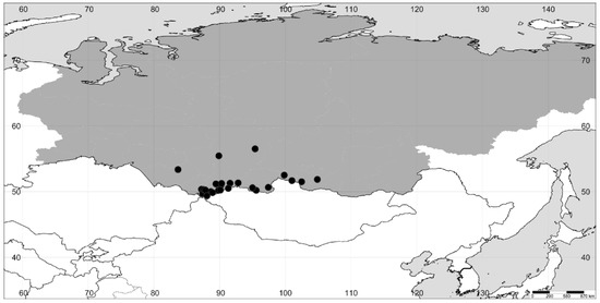 Altay Rep.: [Maiminsky distr.] Ust’-Muny vill., 10 August 1927, N. Koshurnikova s.n. (TK); Shebalinsky distr., nr Chemal vill., 3 August 1972, V. Vašak s.n. (MHA); Shebalinsky distr., 21 August 1974, Yu.P. Surov and N.A. Sakharova s.n. (MW0058825); Ust’-Koksinsky distr., nr Yustik vill., 28 July 1984, D. Shaulo and A. Krasnikov 40 (NS); Shebalinsky distr., nr Elanda vill., 13 August 1985, I. Pshenichnaya and G. Liventsova s.n. (NS); Maiminsky distr., Chemal vill., 12 September 1990, M. Lomonosova et al. 193 (NS).