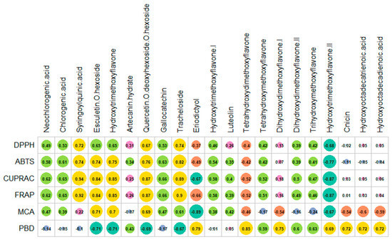 Pearson correlation between the antioxidant activity and individual phytochemicals.