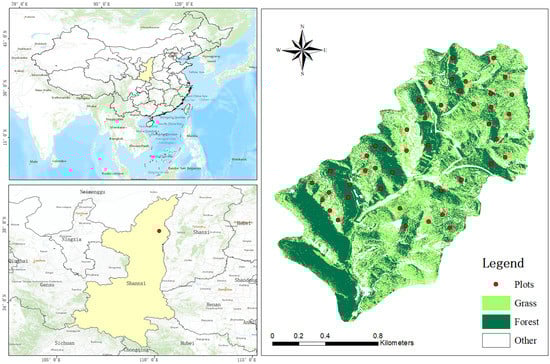 The study area is dominated by grassland and accounts for more than 80% of the total vegetation area. Our research plots are located at an altitude of 850 m to 1287 m, with a slope range from 3 °C to 40 °C.