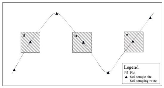 Soil samples from the fifty-seven sites were also obtained at 11:00 a.m. to 15:00 p.m. from 29 July to 31 July 2020. Seven points were selected along an S-shape line in each plot (Figure 2). The sampling was collected from 0–30 cm and mixed. Then, the soil samples were required to pass a 2 mm sieve to remove impurities, the samples were taken back to the laboratory for subsequent analysis. Soil bulk density and soil water content were obtained from three samples along the diagonal in each grassland plot, using a cylindrical metal sampler (100 mm2) [].