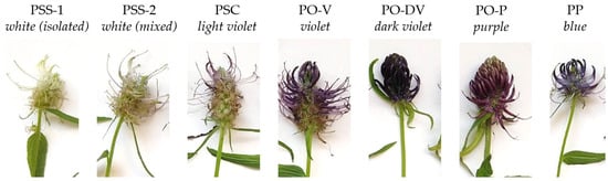 Although color differentiation has been mainly qualitative in traditional taxonomy, either only descriptive or using colorimetric cards, the subjective error of those kinds of color determinations is far from being objective and comparable. Therefore, quantitative numeric methods have been incorporated to clearly establish the differences between varieties, especially in species where a wide variety of colors are found [6,7,8,9]. Besides, the identification and quantification of anthocyanins can identify which of them are responsible for color variations and explain differences even between cultivars [10,11]. No such analyses have been carried out in Phyteuma yet.