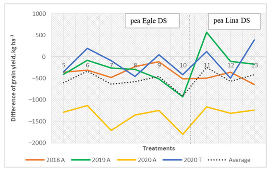 The grain yield of pea in the mixed cropping: difference between actual and expected grain yield.