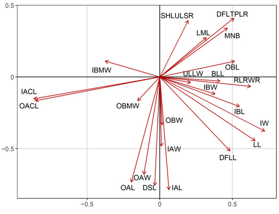 Relative contribution of the morphological characters to the PCA of Figure 1.