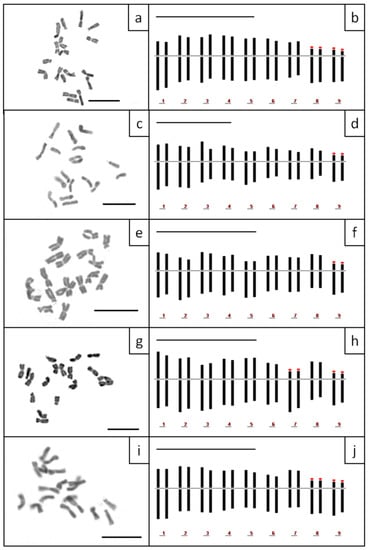 - Peruzzi, L.; Eroğlu, H.E. Karyotype asymmetry: Again, how to measure and what to measure? Comp. Cytogenet. 2013, 7, 1–9. [Google Scholar] [CrossRef] [PubMed]