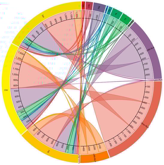 Plant disease R genes, also called resistance-gene analogs (RGAs), play a significant role in triggering the genetic resistance-defence response in crops [46] and are grouped into three main classes: nucleotide-binding site (NBS)-leucine rich repeats (LRR) (NLRs), receptor-like protein kinases (RLKs) and receptor-like proteins (RLPs). NLRs, with the subclasses coiled-coil (CC)-NBS (CN), CNL, NBS, NBS-LRR (NL), Toll/Interleukin-1 receptor (TIR)-NBS-LRR (TNL), TIR-NBS (TN), TIR with unknown domains (TX), NLR with other domains (Other-NLR), are generally involved in effector-triggered plant immunity (ETI) and plant defence [47,48,49,50]. On the other hand, RLKs, with the subclasses, including LRR-RLK, Lysin motif (LsyM) (LysM-RLK) and other receptor (Other-RLK) [51] and RLPs, with the subclasses, including LRR-RLP and LysM (LysM-RLP), are not only involved in the first line of defence by recognising pathogen elicitors [52,53], but also in plant development [54,55].