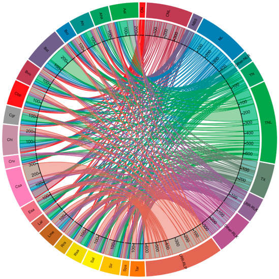 In terms of RGA subclasses, CDRHs were composed of 647 TNL, 613 LRR-RLP, 402 NL, 361 CNL, 301 Other-RLK, 271 TX, 196 LRR-RLK, 168 TN, 89 Other-NLR, 78 NBS and 46 CN (Figure 2), which shows the variation in CDRHs throughout the Brassicaceae family.