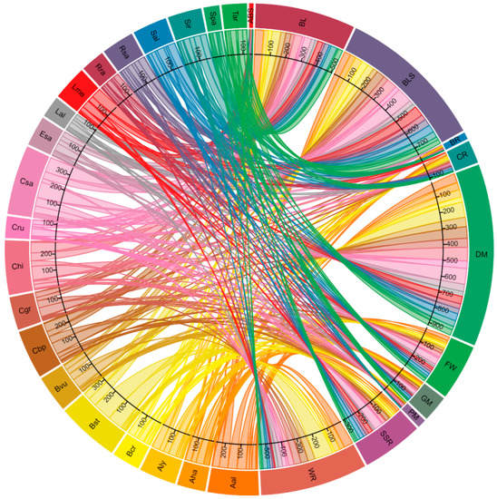 In total, 921 CDRHs associated with cloned R genes against the fungal disease downey mildew (At_ADR1, At_NRG1a, At_NRG1b, At_RLP42, At_RPP1, At_RPP2a, At_RPP2B, At_RPP4, At_RPP5, At_RPP7, At_RPP8, At_RPP13 and At_RPP39) were identified (Figure 3). Of these, 89 and 86 CDRHs were the highest numbers obtained in C. sativa and B. stricta, respectively. The cloned R genes against white rust (Bju_WRR1, At_RAC1, At_WRR4a, At_WRR4b, At_WRR8, At_WRR9 and At_WRR12) (Table 1) were recorded having a total of 544 CDRHs (Figure 3). The highest count was found in B. stricta: 106 CDRHs, followed by A. alpina (52 CDRHs). For blackleg, the cloned R genes (Bna_MAPk, Bna_LepR3/Rlm2, Bna_Rlm9/4/7, At_RLM1a, At_RLM1b and At_RLM3) had a total of 509 CDRHs (Figure 3). Both A. alpina and B. stricta had the most CDRHs, with 49 each, followed by C. hirsuta with 44 and C. sativa with 40. For Sclerotinia stem rot, the cloned R genes (At_BAK1, At_RLP23, At_RLP30 and At_SOBIR1) had a total of 310 CDRHs with the highest count observed in C. sativa with 48 (Figure 3).