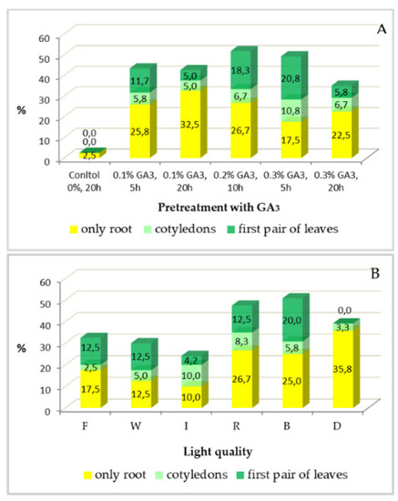 - Costa, A.; Dias, A.S.; Grenho, M.G.; Dias, L.S. Effects of dark or of red, blue or white light on germination of subterranean clover seeds. Emirat. J. Food Agric. 2016, 28, 853–864. Available online: https://www.ejmanager.com/mnstemps/137/137-1466777429.pdf?t=1613473042 (accessed on 30 July 2022).