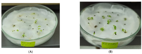 | Treatment Variants 1 | Germinated Seeds (%) | Seedlings with Cotyledons or First Pair of Leaves (%) | Variants 1 | Germinated Seeds (%) | Seedlings with Cotyledons or First Pair of Leaves (%) |