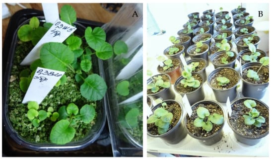 - Murashige, T.; Skoog, F. Revised medium for rapid growth and bioassay with tobacco tissue culture. Physiol. Plant. 1962, 15, 473–497. [Google Scholar] [CrossRef]