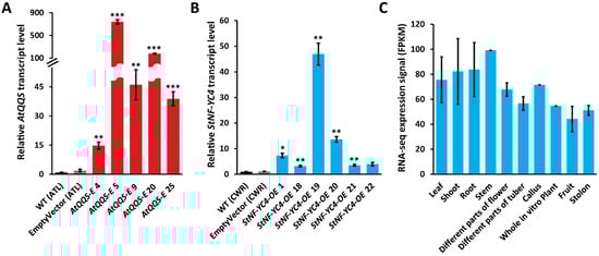 2.2. AtQQS and StNF-YC4 Were Expressed and Overexpressed in Transgenic Potato Tubers