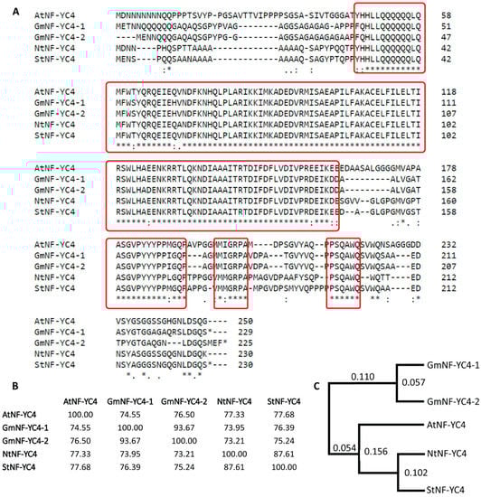 2.6. Sequence Similarity to Other NF-YC4 Homologs Shows Multiple Conserved Regions among Them