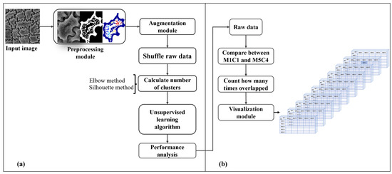 The proposed algorithm was implemented by grouping the data in an unlabeled dataset based on the underlying hidden features in the data in Figure 8, which consisted of two phases: (a) general module and (b) performance analysis module. These two phases are explained in more detail in the following subsections.