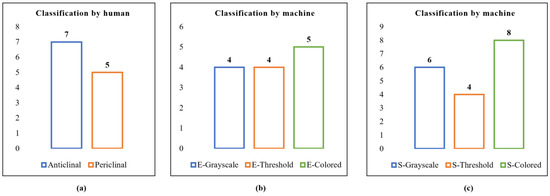 Anticlinal wall results. U to Ω—(a) four-grayscale clusters result, (b) four-threshold clusters result, U—(c) four-grayscale clusters result.