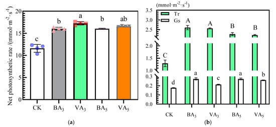 4.1. BA and VA Rates Improved Photosynthesis and Chlorophyll Fluorescence Traits