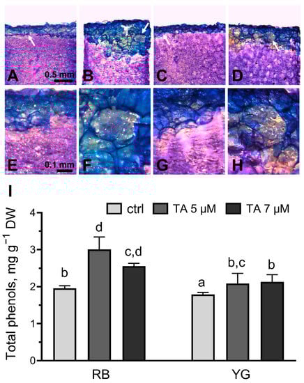 2.4. Phenolic Compounds Deposition and Synthesis in Response to TA