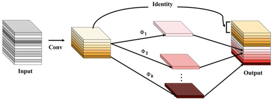 The traditional feature extraction operation has the problem of possessing a large number of parameters. The reason for this is that multiple convolution kernels are stacked to perform convolution mapping for all the channels of the input feature map, which consumes a lot of computational resources. Although this operation can produce rich feature maps, it also inevitably causes waste. In response to this situation, some scholars have proposed some network optimization schemes, such as ShuffleNet [24] and MobileNet [25], which alleviate the bloated model to a certain extent, but the required 1 × 1 convolution will still take up part of the computational resources.