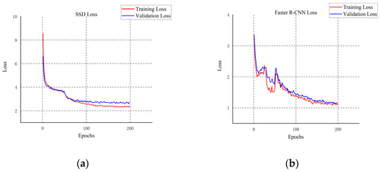 (a)The loss changes of the SSD model; (b)The loss changes of the Faster R-CNN model.
