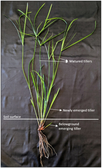 Mechanical intervention forms an important part of the integrated weed management system to reduce the reliance on herbicides [19]. In this regard, soil cultivation and tillage could be used as mechanical methods for weed control, which would result in either fragmentation of the rhizomes, burial of the rhizomes, or both fragmentation and burial together. Typically, cultivation mechanically breaks the rhizomes into small fragments, which would ideally break apical dormancy and release a proportion of dormant buds to develop into shoots, thus increasing the spread [20,21]. However, upon cultivation, shoots develop from vegetative fragments, and, in the process, bud sprouting, and the growth of emerged shoots consume a high proportion of stored energy in the rhizomes [22,23].
