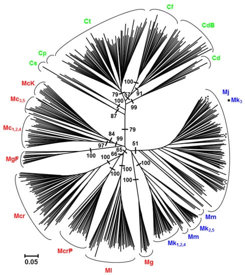 - Felsenstein, J. Confidence limits on phylogenies: An approach using the bootstrap. Evolution 1985, 39, 783–791. [Google Scholar] [CrossRef]