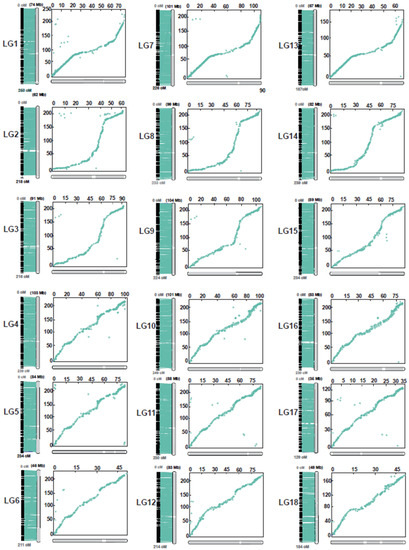 - Rastas, P. Lep-MAP3: Robust linkage mapping even for low-coverage whole genome sequencing data. Bioinformatics 2017, 33, 3726–3732. [Google Scholar] [CrossRef]