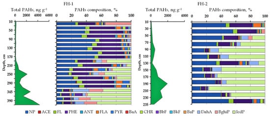 | Depth, cm | PHE/ANT | ANT/178 | ANT/(ANT+PHE) | FLA/PYR | FLA/(FLA+PYR) | BaA/(BaA+CHR) | IcdP/(IcdP+BghiP) | FL/PYR | (PYR+FLA)/(CHR+PHE) | (PYR+BaP)/CHR+PHE) |