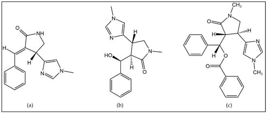 - Maat, L.; Beyerman, H.C. The Imidazole alkaloids. In The Alkaloids: Chemistry and Pharmacology; Brossi, A., Ed.; Academic Press: Cambridge, MA, USA, 1984; pp. 281–333. [Google Scholar] [CrossRef]