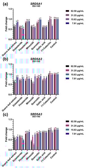 2.4. Effect of Guava Leaf Extract on the Expression of Gene Asscociated with Androgen-Dependent Pathway