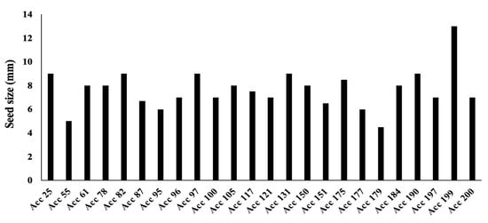 Twenty-four Bambara groundnut genotypes were used in the study with their seed sizes.