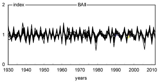 - Cook, E.R.; Holmes, R.L. User’s manual for program ARSTAN. In Tree−Ring Chronologies of Western North America: California, Eastern Oregon a Northern Great Basin; Chronology; Holmes, R.L., Adams, R.K., Fritts, H.C., Eds.; Laboratory of Tree-Ring Research, University of Arizona: Tucson, AZ, USA, 1986; Volume 6, pp. 50–56. [Google Scholar]