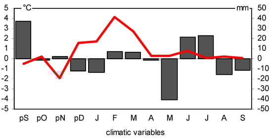 - Sensuła, B.; Wilczyński, S. Tree-ring widths and the stable isotope composition of pine tree-rings as climate indicators in the most industrialised part of Poland during CO2 elevation. Geochronometria 2018, 45, 130–145. [Google Scholar] [CrossRef]