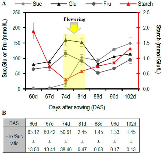 3.1. Hexose to Sucrose Ratio Increases at Early Reproductive Stages
