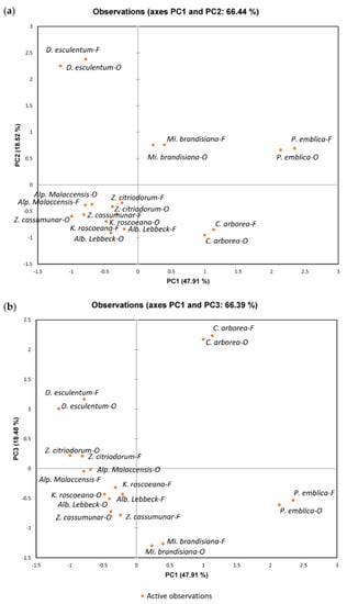 | Alp. malaccensis | 82.92 ± 2.70 a | 84.03 ± 0.15 A | 6.80 ± 0.07 e | 6.59 ± 0.90 D | 81.41 ± 0.55 a | 80.90 ± 0.78 A |