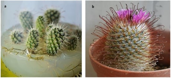 - Pérez-Molphe-Balch, E.; Santos-Díaz, M.D.S.; Ramírez-Malagón, R.; Ochoa-Alejo, N. Tissue culture of ornamental cacti. Sci. Agric. 2015, 72, 540–561. [Google Scholar] [CrossRef]