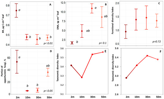 2.2. Phylloplane Activity, DNA Amount, Pathogens, and Diversity