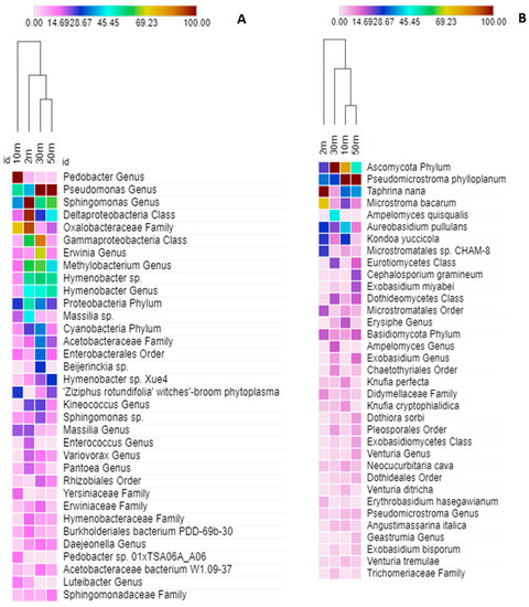 2.3. Taxonomic Structure of the Phylloplane’s Microbial Community