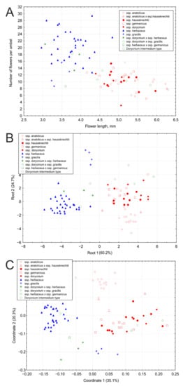 - Reichenbach, L. Flora Germanica Excursoria; Carolum Cnobloch: Leipzig, Germany, 1832; Volume 2, pp. 505–507, 515–517. [Google Scholar]
